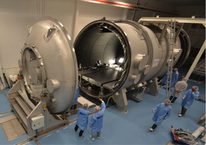 Ce cryostat d’environ 250 litres permet de tester des sous-systèmes jusqu’à des températures de l’ordre de 5K (-268°C).