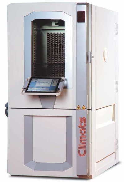 Une enceinte climatique à pression ambiante, en salle climatisée, avec hotte mobile à flux laminaire ISO-7