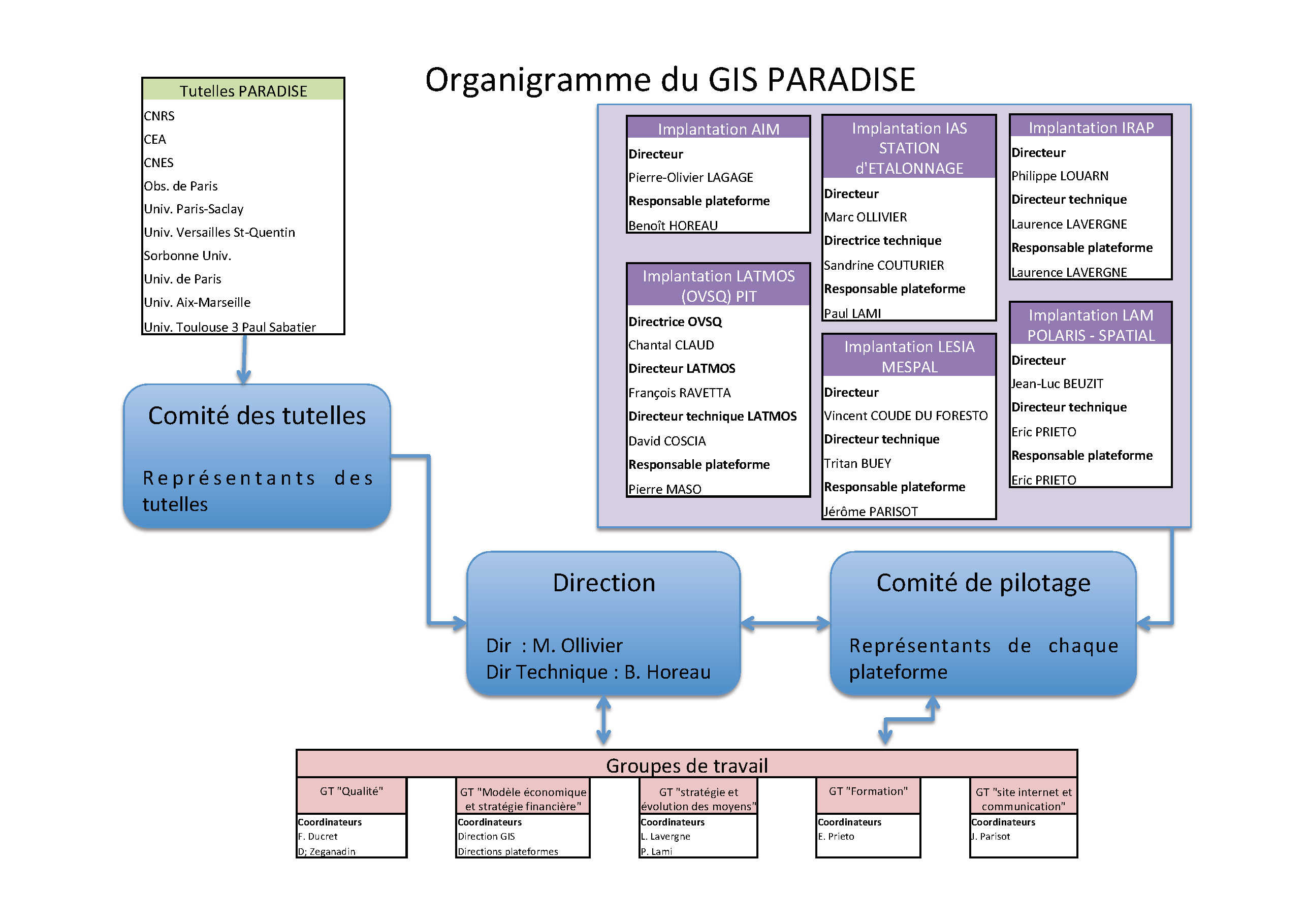 - Un comité de pilotage : organe opérationnel du GIS rassemblant les DU/DT/Responsables des installations des partenaires.
